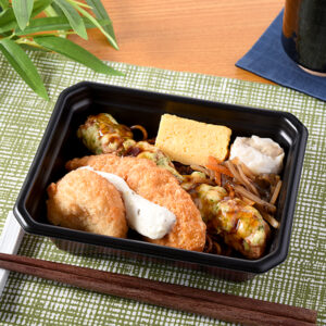 - お好みで、チクワ、シャケ、卵焼き、きんぴら、ソーセージなどを添付してください。